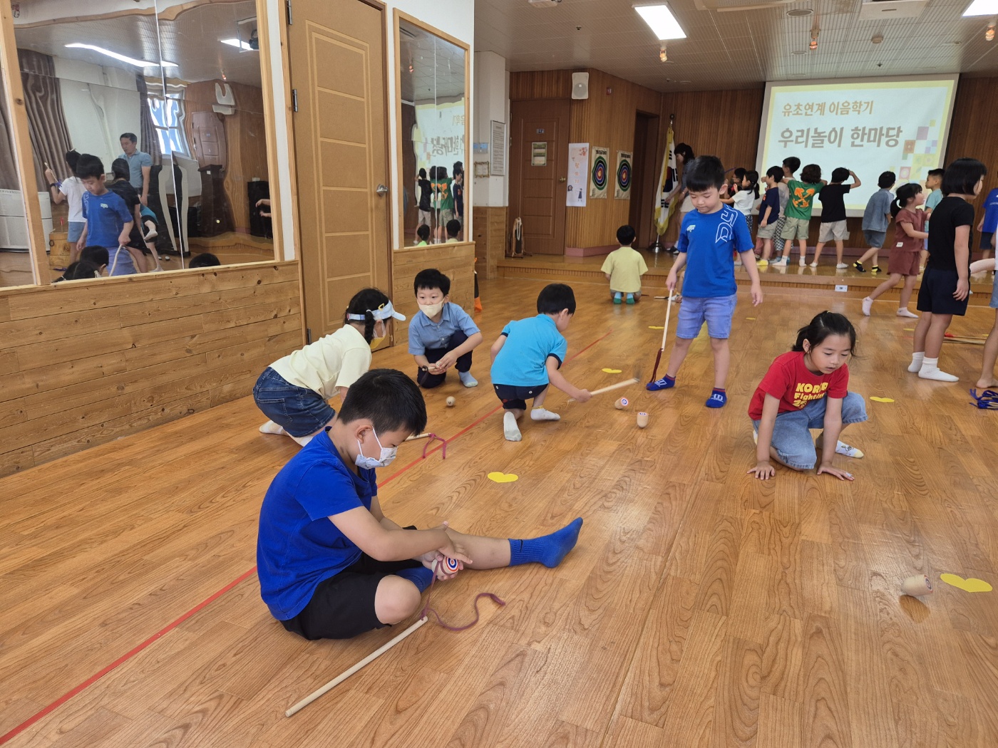 2024년 9월 5일 목요일 아라초등학교 1학년과 함께한 유초연계 이음학기 우리놀이 한마당 사진입니다.