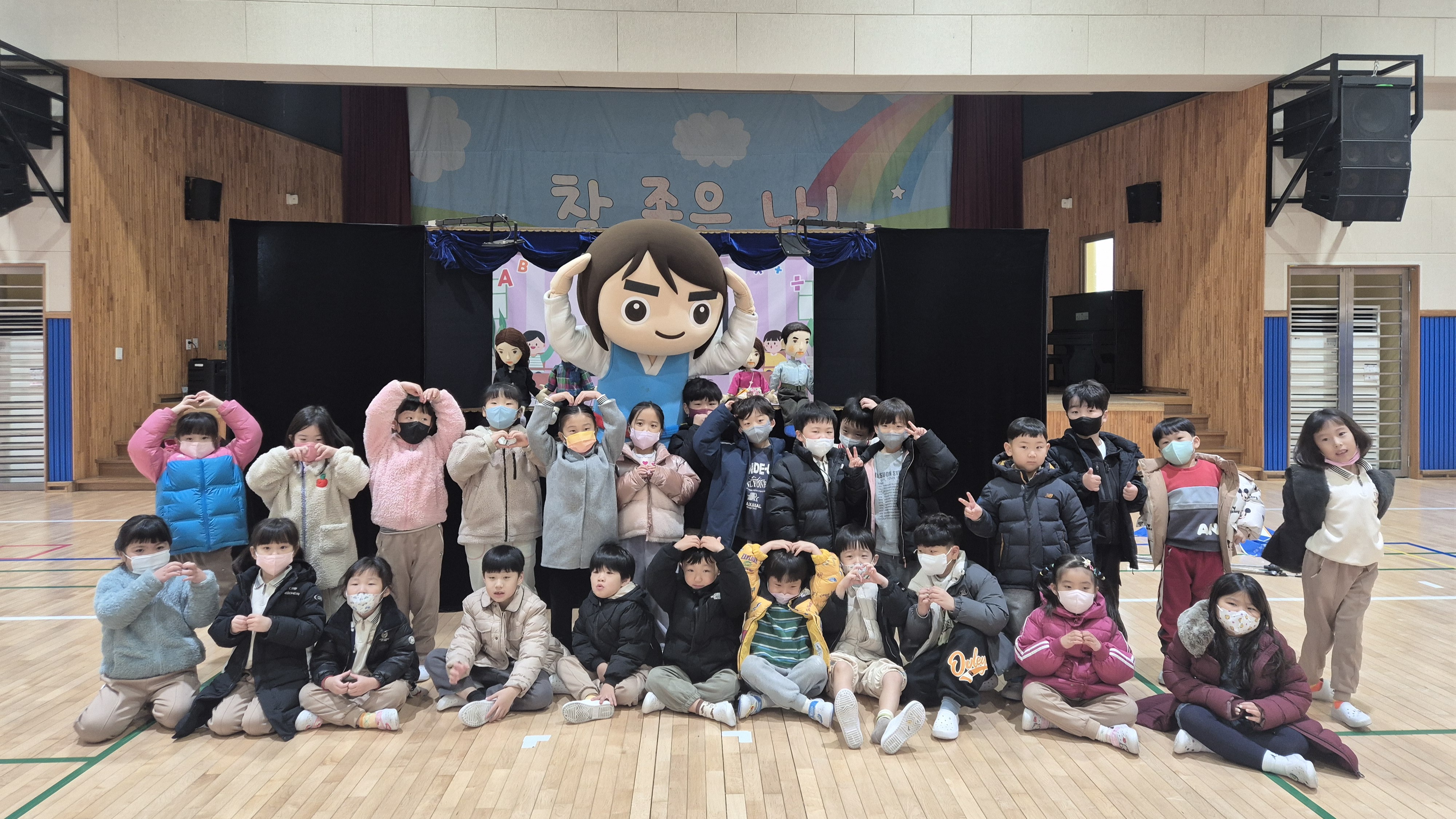 2025년 12월 8일 드높은반, 빛나는반의 아라초 인형극 관람 사진입니다.